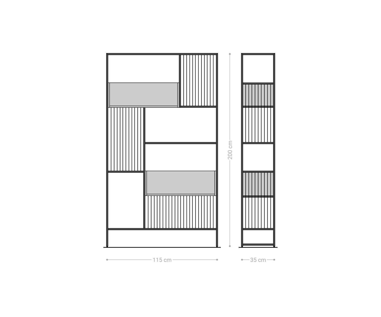Ce sont des caractéristiques différentes et raffinées qui rendent le design de la bibliothèque Lukeo si particulier. L'intégration asymétrique des nombreux compartiments ouverts avec lesquels le meuble se présente est un point fort qui attire facilement les regards. Le look original et imbriqué est égayé par le piètement en treillis aérien et filigrane. Il en résulte un look vif au caractère impressionnant.