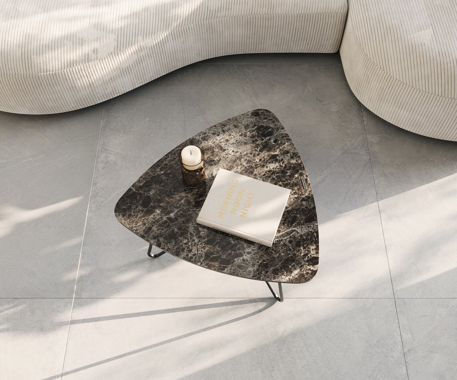 Découvre la table basse compacte et triangulaire « Ekrem », qui se distingue par sa forme exceptionnelle et ses matériaux de qualité. Les coins plus petits et arrondis du plateau de table en céramique Laminam® brun foncé confèrent à la table un aspect doux et élégant. Les veines subtiles de la céramique lui confèrent un aspect naturel et intemporel, tandis que la surface résistante aux rayures et facile d'entretien permet à la table de rester belle pendant longtemps, même en cas d'utilisation quotidienne.