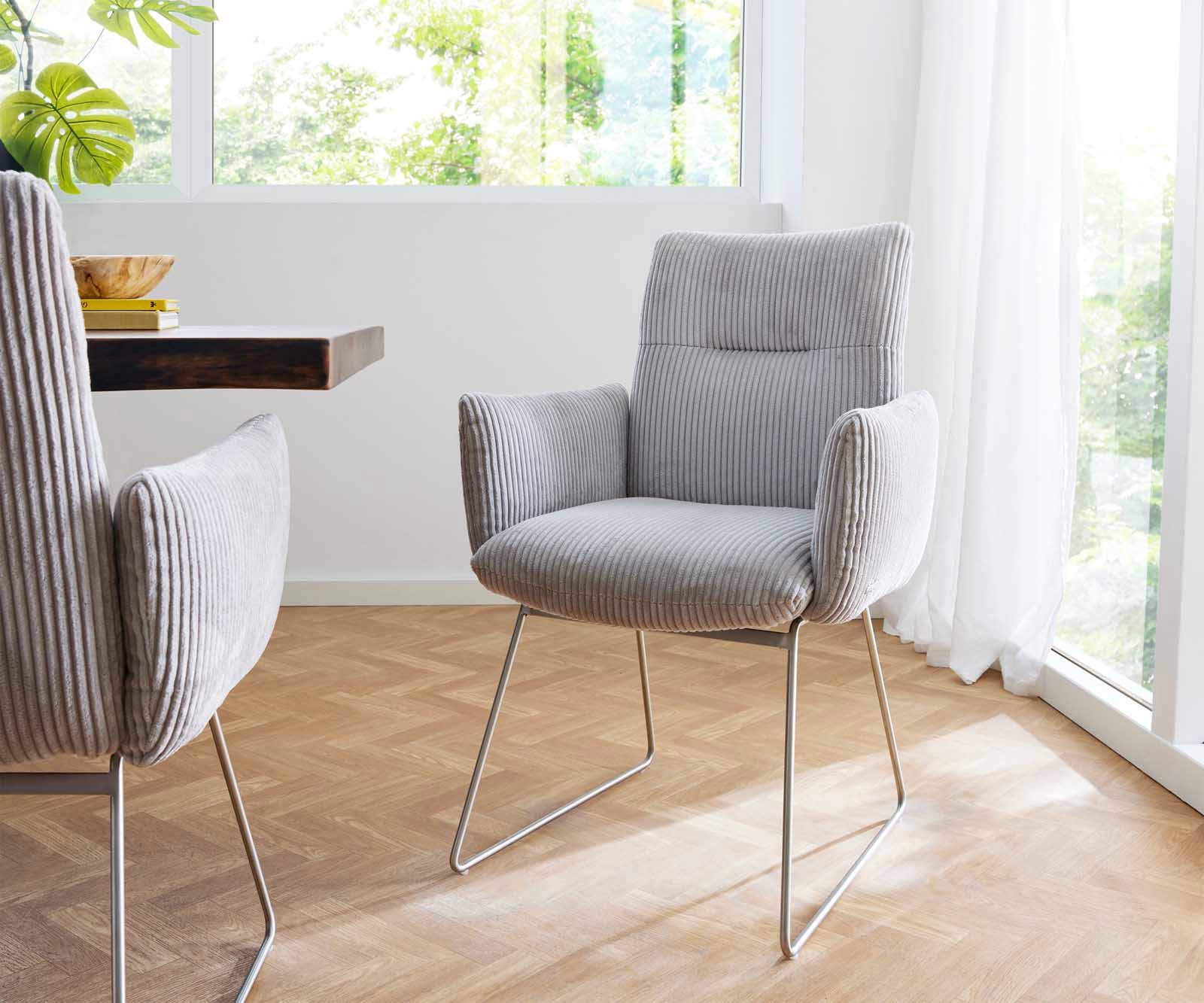 Le design de la chaise de salle à manger Jova dont les accoudoirs hauts et l’assise ne laissent aucun doute sur son confort, est une création dans une forme des plus séduisantes. Évoquant des coussins moelleux, la forme de chaque élément qui compose la chaise, constituant un ensemble qui grâce à la diversité des tissus et autres cuirs, apporte une note de modernité sophistiquée et agrémentera une table à manger ou toutes autres pièces à vivre et se distinguera agréablement de l‘uniformité rectiligne. Un rembourrage de très haute qualité sur ressorts ensachés, intègre la structure de l’assise, ce qui attribue à la chaise une qualité d’assise extrêmement performante.