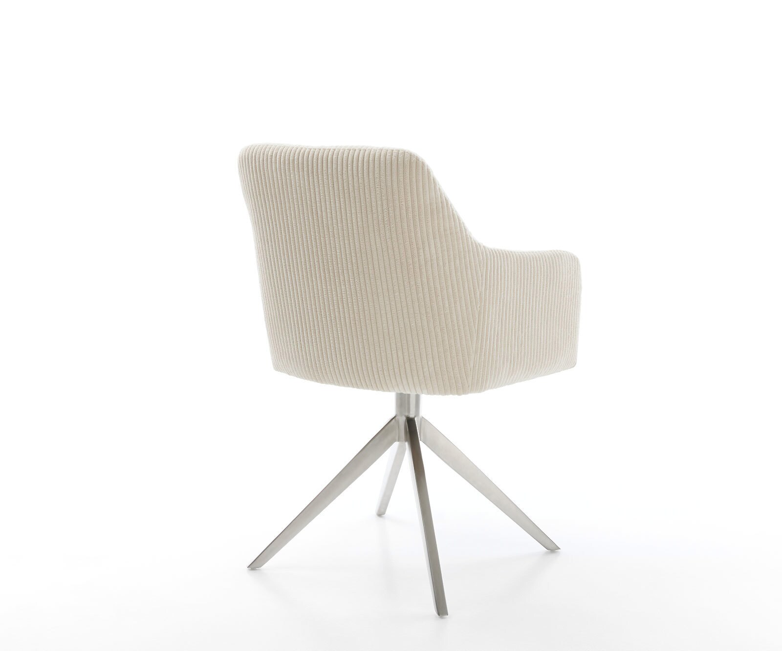 Chaise-de-salle-à-manger Abelia-Flex avec accoudoirs côtelé beige vintage pied croisé angulaire acier inoxydable brossé