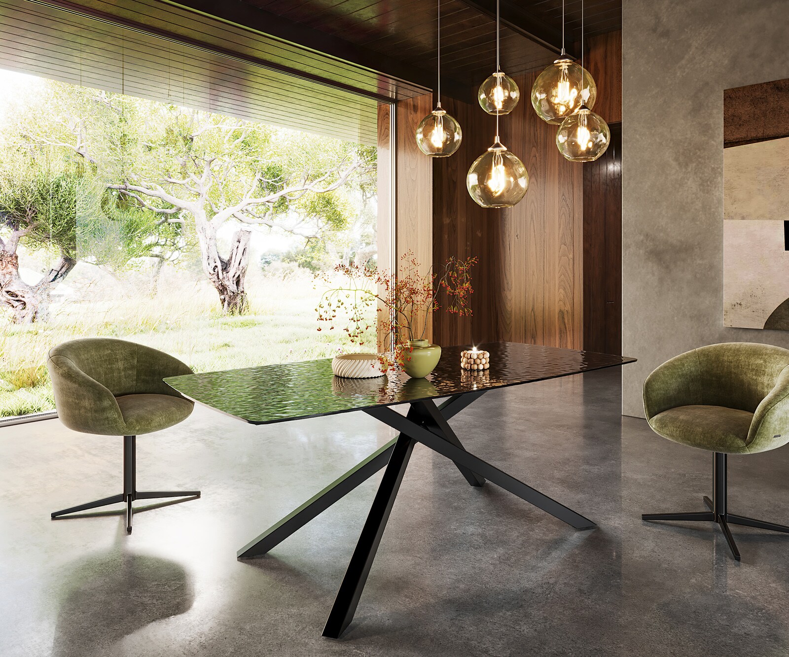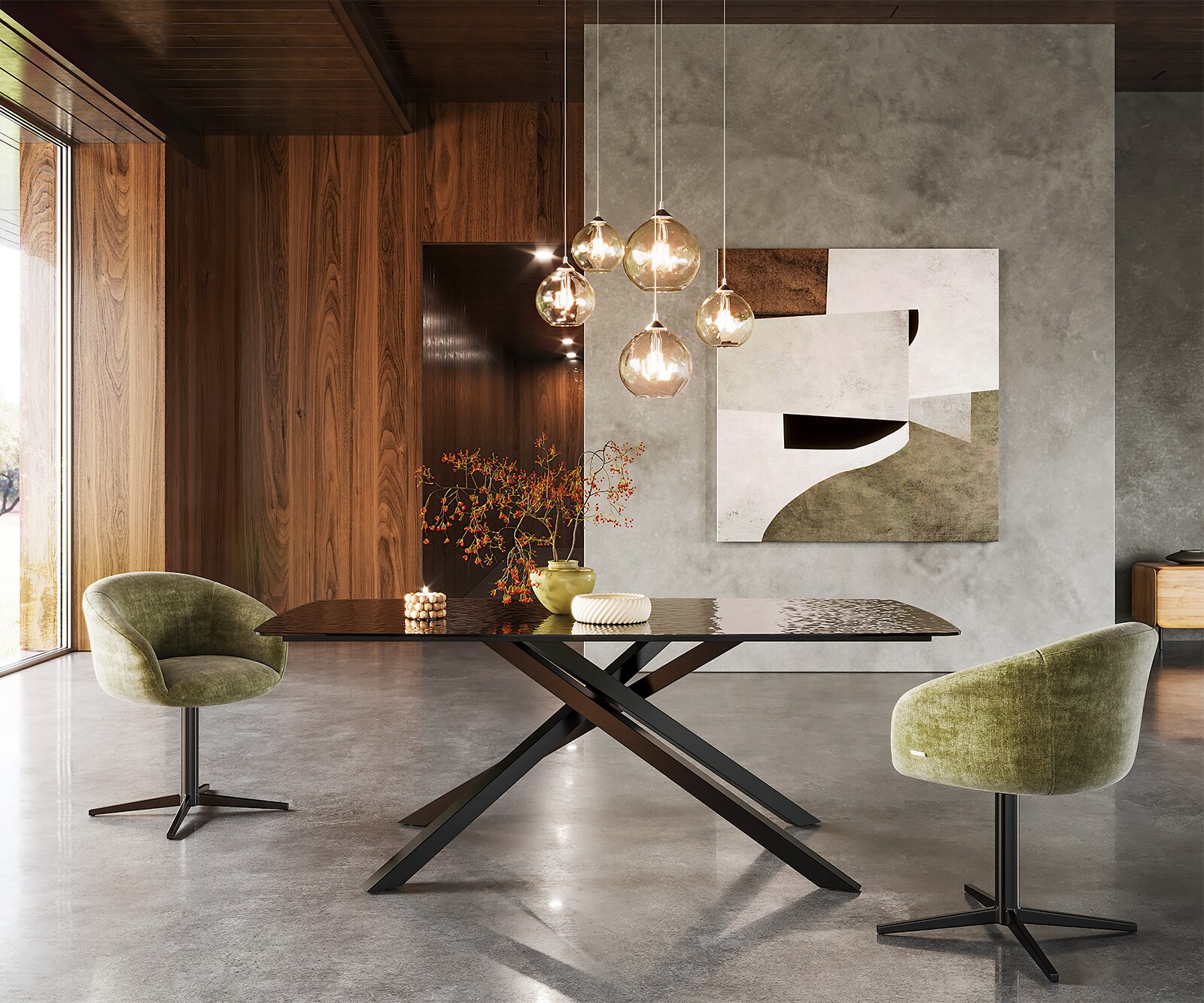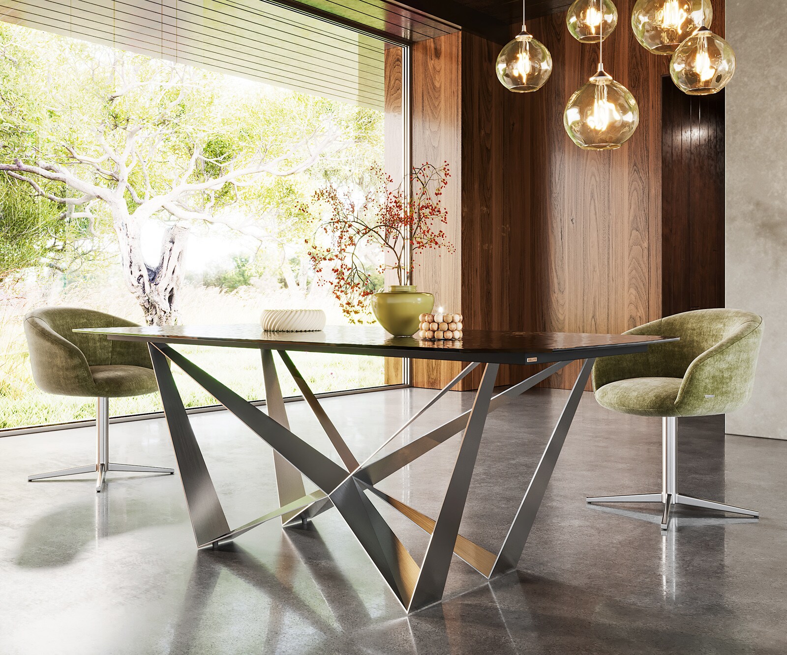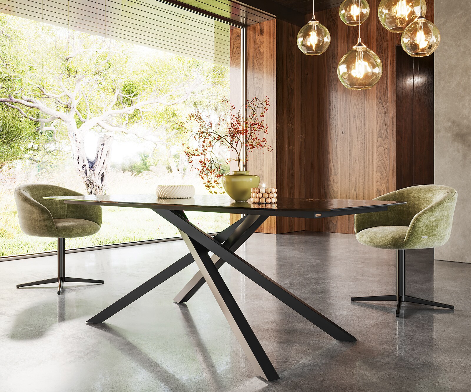 - Le plateau de table est fabriqué à partir d'une plaque de céramique continue et acquiert son caractère unique dans un ensemble cohérent, même en fonction d'extension, sans interruptions ni joints optiques.
